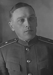 Vasily Georgievich Ryazanov was a General-lieutenant of Aviation in the Soviet Air Forces who was twice awarded the title Hero of the Soviet Union for his leadership of the 1st Guards Assault Aviation Corps during World War II. Ryazanov was responsible for the development of tactics that consisted of the ground-attack aircraft being directed from a command post on the ground close to the frontline, and he was praised by Marshal Ivan Konev for having the best attack aircraft in the Air Force.