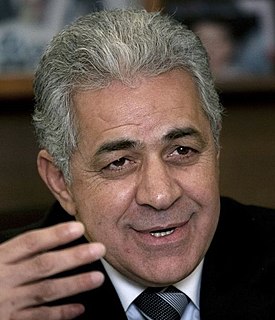Hamdeen Sabahi is an Egyptian politician, journalist and poet. He is currently the leader of the Egyptian Popular Current and a co-leader of the National Salvation Front. An opposition activist during the Anwar Sadat and Hosni Mubarak eras, Sabahi was jailed 17 times during their presidencies for political dissidence. He was an immediate supporter and participant of the 2011 Egyptian revolution. Sabahi entered the 2012 Egyptian presidential race in which he finished third place with 21.5% of the vote trailing the second place candidate Ahmed Shafiq by a margin of 700,000 votes. In the 2014 presidential election he was one of just two candidates. He ran second with less than 4% of the vote. Abdel Fattah el-Sisi was declared the winner after attracting 22 million of the nearly 23 million votes cast. Sisi was sworn into office as President of Egypt on 8 June 2014.