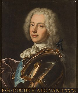 Paul-Hippolyte de Beauvilliers, duke of Saint-Aignan was a French diplomat, soldier, chevalier des ordres du Roi and peer of France.
