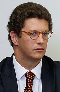 Ricardo de Aquino Salles is a Brazilian politician, former member of the New Party, suspended between October 2019 and May 2020. He was named Minister of the Environment by President Jair Bolsonaro.