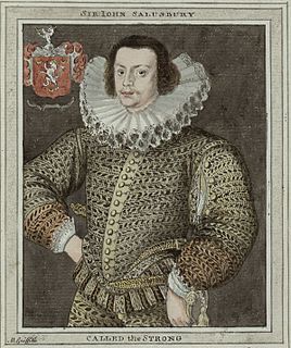 Sir John Salusbury was a Welsh knight, politician and poet of the Elizabethan era. He is notable for his opposition to the faction of Robert Devereux, 2nd Earl of Essex, and for his patronage of complex acrostic and allegorical poetry that anticipated the Metaphysical movement.