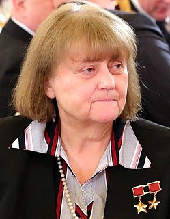 Svetlana Yevgenyevna Savitskaya is a retired Soviet aviator and cosmonaut who flew aboard Soyuz T-7 in 1982, becoming the second woman in space. On her 1984 Soyuz T-12 mission she became the first woman to fly to space twice, and the first woman to perform a spacewalk.