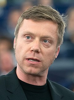 Martin Schirdewan is a German journalist, politician and Member of the European Parliament (MEP) representing Germany since 8 November 2017, following the resignation of Fabio De Masi. He is a member of The Left, and is co-chair of the The Left in the European Parliament (GUE/NGL) parliamentary grouping. As a group co-chair, he is a member of the Conference of Presidents of the European Parliament, the body responsible for the administration of the parliament.