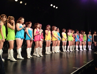 Ebisu Muscats is the name of a series of J-pop groups mainly consisting of Japanese gravure idols and AV idols, under the Pony Canyon record label. The original group was established in 2008 as part of the TV Tokyo's variety show Onegai! Muscat which first aired in April 2008. Their first single, released in 2010, reached number 8 in sales on Oricon’s singles chart. They held their first live show in July 2010 in Shibuya, Tokyo.