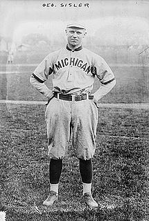 George Harold Sisler, nicknamed "Gorgeous George", was an American professional baseball first baseman and player-manager. He played in Major League Baseball (MLB) for the St. Louis Browns, Washington Senators and Boston Braves. He managed the Browns from 1924 through 1926.