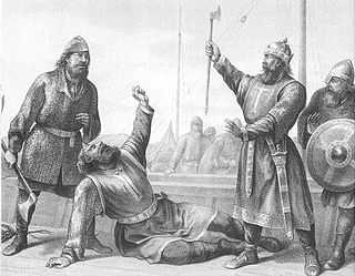 Erling Skjalgsson, på Sola, "Rygekongen", Herse/Høvding i Rogaland, was a Norwegian political leader of the late 10th and early 11th century. He has been commonly seen as this period's foremost defender of the historic Norwegian social system. Erling fought for the traditional small, autonomous kingdoms and the þing system, against the reformists of the Fairhair family line.