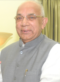 Kaptan Singh Solanki is an Indian politician of the Bharatiya Janata Party and the 17th Governor of Tripura. From August 2009, he was the member of the Parliament of India representing Madhya Pradesh State in the Rajya Sabha, the upper house until May 2014.