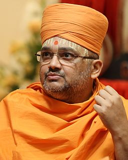 Bhadreshdas Swami is a Sanskrit scholar and an ordained monk of the Bochasanwasi Akshar Purushottam Swaminarayan Sanstha (BAPS). In 2017 he completed the Swaminarayan Bhashyam, a five-volume classical Sanskrit commentary on the Prasthanatrayi. This commentary on Hinduism's three canonical texts: the Upanishads, Bhagavad Gita, and the Brahma sutras, forms the interpretive foundation of the philosophy of Akshar Purushottam darshana, also known as Swaminarayan darshana, illuminating the Vedic roots of the Akshar Purushottama philosophy, which was propagated by the 19th-century Hindu leader, Swaminarayan and later by Shastriji Maharaj.