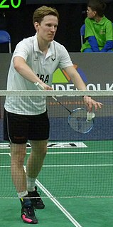 Robin Tabeling is a Dutch badminton player, specializing in doubles play. He started playing badminton in Amstelveen at a club called BV van Zijderveld. He won a silver medal at the 2013 European Junior Championships in the mixed doubles event and a bronze medal in team event. Partnered with Jelle Maas, he won bronze medals at the 2018 European Championships and 2019 European Games.