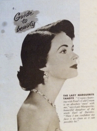 Lady Marguerite Tangye (1913–2002), born Lady Marguerite Rose Bligh, was the daughter of Esme Ivo Bligh, the 9th Earl of Darnley, and Daphne Mulholland. She was a famous debutante, model, and actress in 1930s London and was widely photographed. Lady Marguerite worked for the Mechanised Transport Corps in World War II and in later life held a variety of jobs as well as writing about her childhood in Brazil.