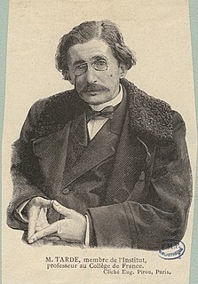 Gabriel Tarde was a French sociologist, criminologist and social psychologist who conceived sociology as based on small psychological interactions among individuals, the fundamental forces being imitation and innovation.