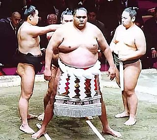 Akebono Tarō is an American-born Japanese former professional sumo wrestler and professional wrestler from Waimānalo, Hawaii. Joining sumo in Japan in 1988, he was trained by pioneering Hawaiian wrestler Takamiyama and rose swiftly up the rankings, reaching the top division in 1990. After two consecutive yusho or tournament championships in November 1992 and January 1993 he made history by becoming the first non-Japanese-born wrestler ever to reach yokozuna, the highest rank in sumo.