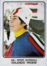 Roland Thöni was an Italian alpine ski racer. A cousin of Gustav Thöni, Roland competed on the World Cup circuit during the 1970s.