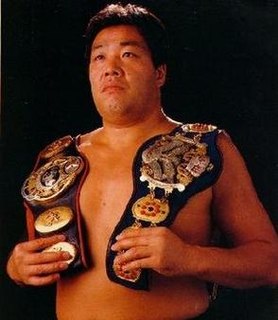 Tomomi "Tommy" Tsuruta , better known by his ring name Jumbo Tsuruta , was a Japanese professional wrestler who wrestled for All Japan Pro Wrestling (AJPW) for most of his career, and is well known for being the first ever Triple Crown Heavyweight Champion, having won the PWF Heavyweight Championship, the NWA United National Championship, and the NWA International Heavyweight Championship, and unifying the three titles. He is also known for being one-half of the first World Tag Team Champions with Yoshiaki Yatsu, having won the NWA International Tag Team Championship and the PWF Tag Team Championship, and unifying the two titles.