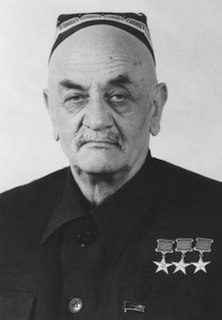 Hamroqul Tursunqulov was the chairman of the prestigious "Sharqi Yulduz" kolkhoz in the Uzbek SSR and thrice Hero of Socialist Labor. A prominent leader of the collective farm movement in the Uzbek SSR, he held positions in politics in addition to his work in agriculture. He is the only thrice Hero of Socialist Labor who was not a senior party or military leader.