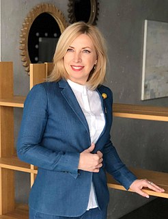 Iryna Andriivna Vereshchuk (Ukrainian: Ірина Андріївна Верещук; is a Ukrainian social activist, politician, and People's Deputy of Ukraine of the 9th convocation.