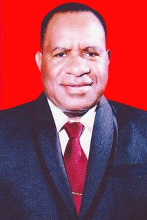John Wempi Wetipo is an Indonesian politician from Papua. He is currently serving as Deputy Minister of Home Affairs, being appointed in 2022. Previouly he served as Deputy Minister of Public Works and Housing from 2019 until 2022 and as the Regent of Jayawijaya Regency for two terms between 2008 and 2018. He participated in the 2018 Papua gubernatorial election, but lost to incumbent Lukas Enembe.