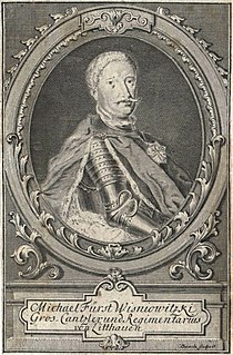 Prince Michał Serwacy Wiśniowiecki (1680–1744) was a Lithuanian nobleman, magnate, politician, diplomat, general, a successful military commander and the last male representative of the Wiśniowiecki family.