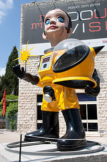 Kenji Yanobe is a Japanese artist known for his upbeat yet dystopian artwork. His sculpture simulates consumer products designed for survival after a nuclear holocaust.