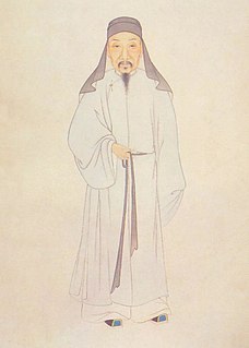 Gu Yanwu, also known as Gu Tinglin, was a Chinese philologist, geographer, and famous scholar-official in Qing dynasty. He spent his youth during the Manchu conquest of China in anti-Manchu activities after the Ming dynasty had been overthrown. He never served the Qing dynasty. Instead, he traveled throughout the country and devoted himself to studies.