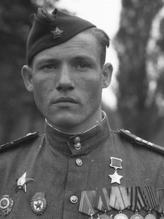 Mikhail Alekseyevich Yegorov, along with Meliton Kantaria, was one of the three soldiers credited with raising the Soviet flag over the Reichstag on the 2 May 1945 after the Battle of Berlin.