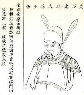 Qian Yuanguan (錢元瓘), born Qian Chuanguan (錢傳瓘), formally King Wenmu of Wuyue (吳越文穆王), courtesy name Mingbao (明寶), was the second king of the state of Wuyue, during the Five Dynasties and Ten Kingdoms period of China. During his reign, his kingdom was centred on modern Zhejiang. He ascended to the throne in 932, when his father Qian Liu left the state in his hands, to 941. He was the father to all three of Wuyue's subsequent kings.