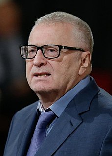 Vladimir Volfovich Zhirinovsky is a Russian politician and leader of the Liberal Democratic Party of Russia. He is fiercely nationalist and has been described as "a showman of Russian politics, blending populist and nationalist rhetoric, anti-Western invective and a brash, confrontational style". His views have been described in the West as fascist. He is considered by Russian scholars as a neo-Eurasianist.