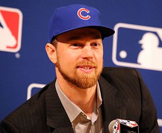 Benjamin Thomas Zobrist, nicknamed Zorilla, is an American former professional baseball second baseman and outfielder. He played in Major League Baseball (MLB) for the Tampa Bay Devil Rays/Rays, Oakland Athletics, Kansas City Royals, and Chicago Cubs. Zobrist played in three World Series, winning the last two becoming a two-time World Series champion in consecutive seasons of 2015 with the Royals and 2016 with the Cubs.