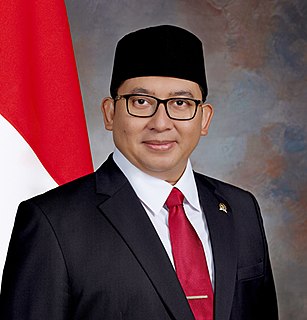 Fadli Zon is an Indonesian politician who is the current Member of the Indonesian People's Representative Council, and had previously been the Deputy Speaker of the People's Representative Council. As one of the founders of the Great Indonesia Movement Party in 2007, he is the party's current vice chairman.