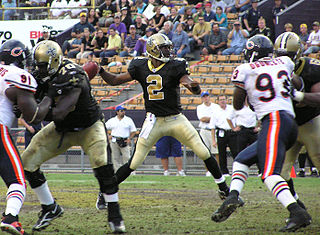 Aaron Lafette Brooks is a former American football quarterback who played in the National Football League (NFL) for eight seasons, primarily with the New Orleans Saints. He played college football at Virginia and was selected by the Green Bay Packers in the fourth round of the 1999 NFL Draft. After one season with the Packers, he was a member of the Saints for six seasons, where he led the franchise to their first playoff victory in 2000 against defending Super Bowl champion St. Louis Rams. Brooks also became the first NFL quarterback to eliminate the defending Super Bowl champions in his first career postseason start. In his final season, he played for the Oakland Raiders. Brooks retired in 2007 as the Saints' franchise leader in both season and career touchdown passes, since surpassed by Drew Brees. For his accomplishments with the franchise, he was inducted to the New Orleans Saints Hall of Fame in 2014.