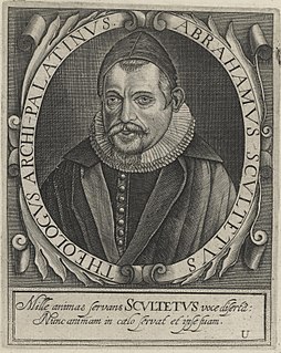 Abraham Scultetus was a German professor of theology, and the court preacher for the Elector of the Palatinate Frederick V.