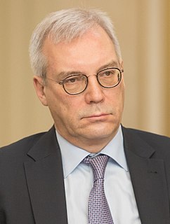 Alexander Viktorovich Grushko is a Russian diplomat, and is currently Deputy Minister of Foreign Affairs, since 22 January 2018. Previously, he was the Permanent Representative of Russia to NATO, serving from 2012 to 2018.