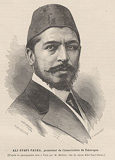 Ali Suavi was an Ottoman political activist, journalist, educator, theologian and reformer. He taught at an elementary school in Bursa, preached at the Sehzade Mosque in Constantinople, wrote for Filip (Philip) Efendi’s newspaper Muhbir, and worked in different positions at offices in Simav, Plovdiv, and Sofia. He was a member of the Young Ottomans and editor of its official journal. He was exiled to Kastamonu because of his writings against Ottoman Sultan Abdülaziz. He was furthermore known for his racist views, as he regarded the Turkish race to be superior.
