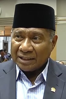 Drs. Kyai Hajji Habib Ali Alwi bin Thohir Al Husainy is an Indonesian politician, da'i, Islamic scholar and founder of the Pondok Pesantren Modern Al-Husainy, Serpong, South Tangerang, Banten. At the election of regional head and deputy regional head of Tangerang Regency in 2008, Alwi was nominated by the Democrat Party and the National Awakening Party as a candidate for vice regent along with Usamah Hisyam as a candidate for regent, but this pair was defeated by incumbent candidate Ismet Iskandar with Rano Karno as his deputy. Currently, Alwi serves as a senator representing the province of Banten in the seat of the Regional Representative Council of the Republic of Indonesia period 2014–2019.