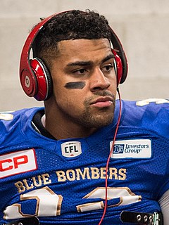 Andrew Harris is a professional Canadian football running back for the Winnipeg Blue Bombers of the Canadian Football League (CFL). Harris is a two-time Grey Cup champion and was named the Most Valuable Canadian of the 99th Grey Cup following a BC Lions' win, and won both the Grey Cup Most Valuable Player and Most Valuable Canadian in his Blue Bombers' 107th Grey Cup win. He is a five-time CFL All-Star and a six-time CFL West All-Star. He played for the Lions for six seasons before joining the Blue Bombers in 2016 as a free agent. As a Bomber, he was named the 2017 Most Outstanding Canadian after leading the league in rushing and setting an all-time record for single-season receptions by a running back, he is the CFL leader in career rushing yards by a Canadian. He played junior football for the Vancouver Island Raiders of the Canadian Junior Football League.