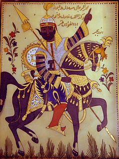 Antarah ibn Shaddad al-Absi, also known as ʿAntar, was a pre-Islamic Arab knight and poet, famous for both his poetry and his adventurous life. His chief poem forms part of the Mu'allaqāt, the collection of seven "hanging odes" legendarily said to have been suspended in the Kaaba. The account of his life forms the basis of a long and extravagant romance.