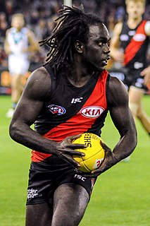 Anthony William Watson McDonald-Tipungwuti is a professional Australian rules footballer playing with the Essendon Football Club in the Australian Football League (AFL). He was drafted by Essendon with their second selection in the 2015 rookie draft. McDonald-Tipungwuti made his debut in Round 1 of the 2016 season against the Gold Coast Suns.