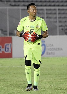 Awan Setho Raharjo is an Indonesian professional footballer who plays as a goalkeeper for Liga 1 club Bhayangkara and the Indonesia national team. He is a Second Police Brigadier in the Indonesian National Police.