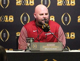 Brian Daboll is a Canadian-American football coach who is the offensive coordinator for the Buffalo Bills of the National Football League (NFL). He previously served as the offensive coordinator for the Cleveland Browns, Miami Dolphins, Kansas City Chiefs, and Alabama. Daboll has also served in various capacities as an assistant coach for the New England Patriots.