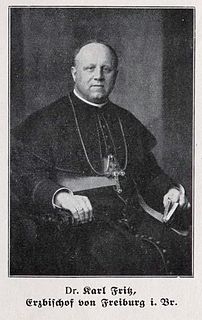 Karl or Carl Fritz was a German Roman Catholic clergyman. From 28 October 1920 until his death he served as Archbishop of Freiburg.