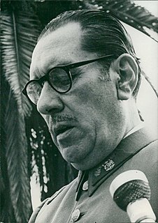 General Carlos Prats González was a Chilean Army officer and politician. He served as a minister in Salvador Allende's government while Commander-in-chief of the Chilean Army. Immediately after General Augusto Pinochet's September 11, 1973 coup, Prats went into voluntary exile in Argentina. The following year, he and his wife, Sofía Cuthbert, were assassinated in Buenos Aires by a car bomb planted by the Dirección de Inteligencia Nacional.