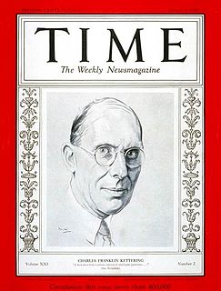 Charles Franklin Kettering sometimes known as Charles "Boss" Kettering was an American inventor, engineer, businessman, and the holder of 186 patents. He was a founder of Delco, and was head of research at General Motors from 1920 to 1947. Among his most widely used automotive developments were the electrical starting motor and leaded gasoline. In association with the DuPont Chemical Company, he was also responsible for the invention of Freon refrigerant for refrigeration and air conditioning systems. At DuPont he also was responsible for the development of Duco lacquers and enamels, the first practical colored paints for mass-produced automobiles. While working with the Dayton-Wright Company he developed the "Bug" aerial torpedo, considered the world's first aerial missile. He led the advancement of practical, lightweight two-stroke diesel engines, revolutionizing the locomotive and heavy equipment industries. In 1927, he founded the Kettering Foundation, a non-partisan research foundation. He was featured on the cover of Time magazine on January 9, 1933.