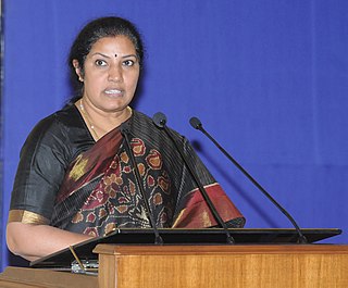 Daggubati Purandareswari is an Indian politician from the state of Andhra Pradesh. She represented the Visakhapatnam constituency of Andhra Pradesh as a Member of Parliament in the 15th Lok Sabha of India. She had previously represented the Bapatla constituency in the 14th Lok Sabha, during which period she served as the Minister of State in the Ministry of Human Resource Development. She joined the Bharatiya Janata Party (BJP) on 7 March 2014. In 2014, she fought the Lok Sabha election on a BJP ticket from Rajampet and lost. Purandareswari was appointed BJP Mahila Morcha Prabhari.