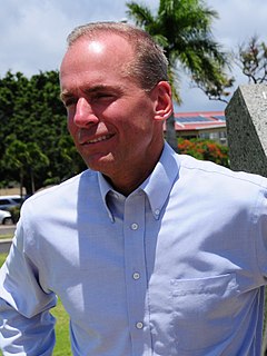 Dennis A. Muilenburg is an American engineer, business executive, and the former president and chief executive officer (CEO) of The Boeing Company, a multinational aerospace and defense company. He was CEO from 2015 to 2019, when he was fired in the aftermath of two crashes of the 737 MAX and its subsequent groundings.
