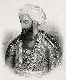 Dost Mohammad Khan was the founder of the Barakzai dynasty and one of the prominent rulers of Afghanistan during the First Anglo-Afghan War. With the decline of the Durrani dynasty, he became Emir of Afghanistan from 1823 to 1839 and then from 1843 to 1863. An ethnic Pashtun, he was the 11th son of Sardar Payendah Khan who was killed in 1799 by Zaman Shah Durrani. At the start of his rule in March 1823, the Afghans lost their former stronghold of Peshawar Valley to the Sikh Khalsa Army of Ranjit Singh at the Battle of Nowshera. The Afghan forces in the battle were supported by Azim Khan, half-brother of Dost Mohammad Khan.