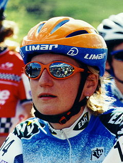 Edita Pučinskaitė is a Lithuanian racing cyclist. For many years, she was one of the top competitors in women's road racing with a victory in the World Road Race Championships in 1999 and several high finishes in major tours, world championships and the UCI points listings.