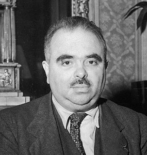Édouard Henri Jean Bonnefous was a French politician. Before World War II (1939–45) he was active in the study of international affairs. After the war he was elected a deputy on the Rally of Left Republicans platform in 1946, and remained a deputy until 1958. He served as a minister in several cabinets, and was also active in the Council of Europe. He was a strong advocate of greater European integration. From 1959 to 1986 he was a member of the Senate, where he became a critic of General de Gaulle, and an advocate of protection of the environment.