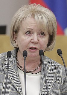 Emilia Edgardovna Slabunova is a Russian politician. She was leader of Yabloko party from 2015 to 2019 and a member of the Legislative Assembly of the Republic of Karelia since 2011.