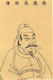 Liu Zhiyuan, later changed to Liu Gao (劉暠), formally Emperor Gaozu of (Later) Han ( 漢高祖), was the ethnically-Shatuo founder of the Later Han, the fourth of the Five Dynasties in the Five Dynasties and Ten Kingdoms period of Chinese history. The subsequent Northern Han is not considered part of its history.