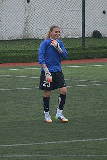 Ezgi Çağlar is a Turkish women's football goalkeeper currently playing in the Turkish Women's First Football League for Fenerbahçe in İstanbul with jersey number 1. She is member of the Turkey women's national team since 2007.